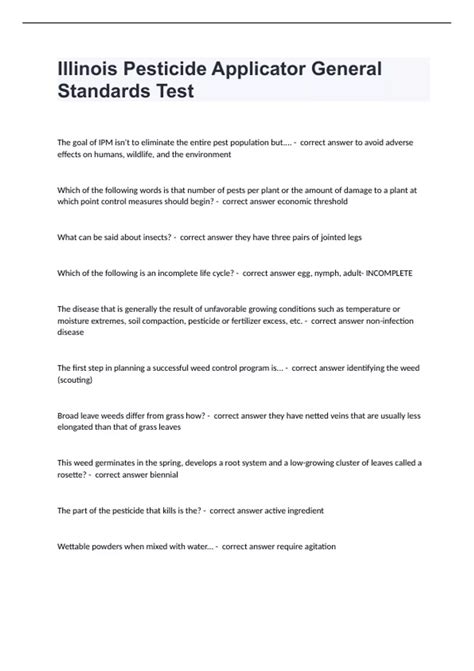 Read Online ILLINOIS PESTICIDE APPLICATOR TEST QUESTIONS Doc